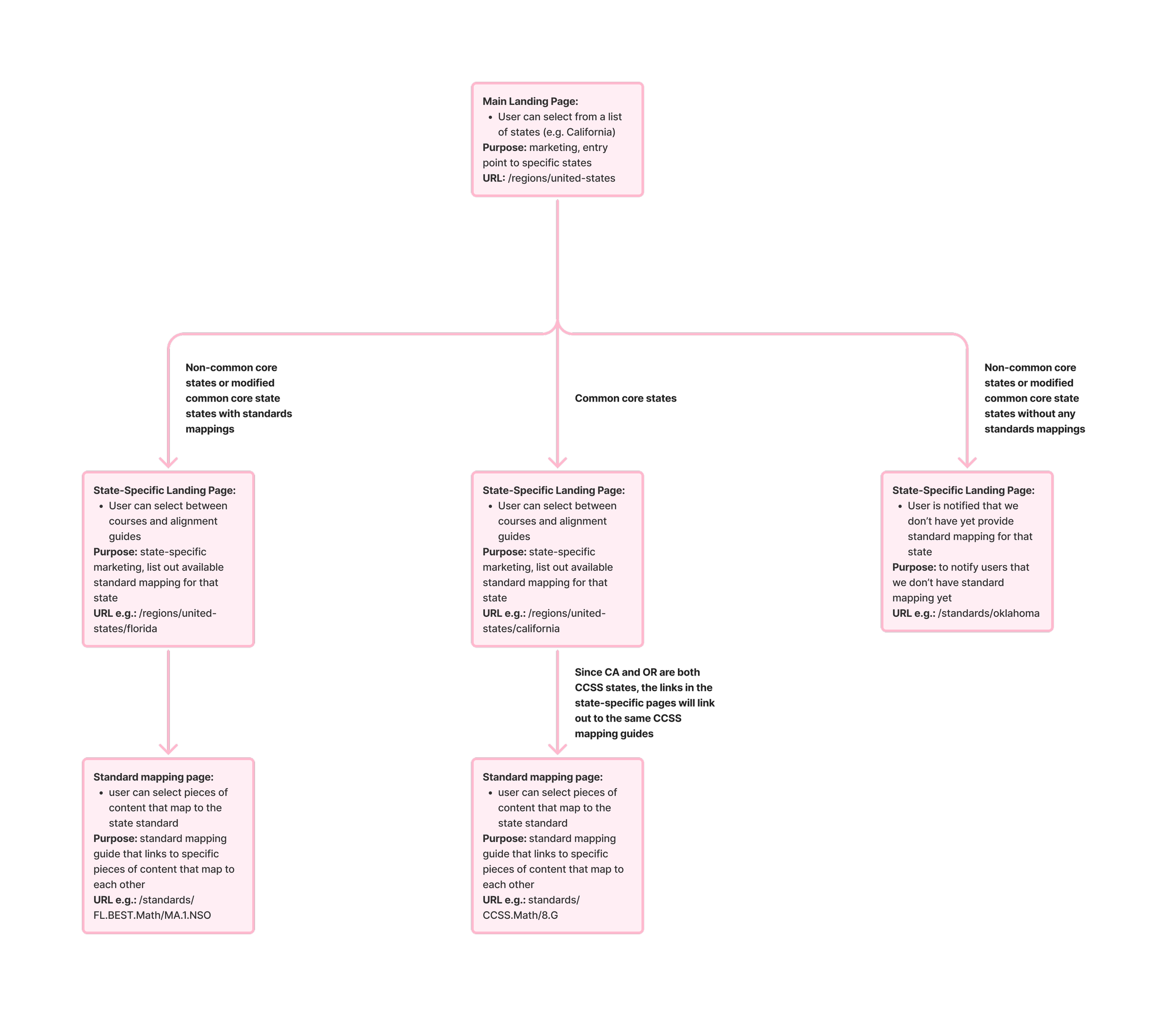 This question was big on my mind, understanding the content hierarchy of each state curriculum was crucial in coming up with a solution that would work across states and be programatically efficient for the engineering team to implement. How did I get answers? I did so by: